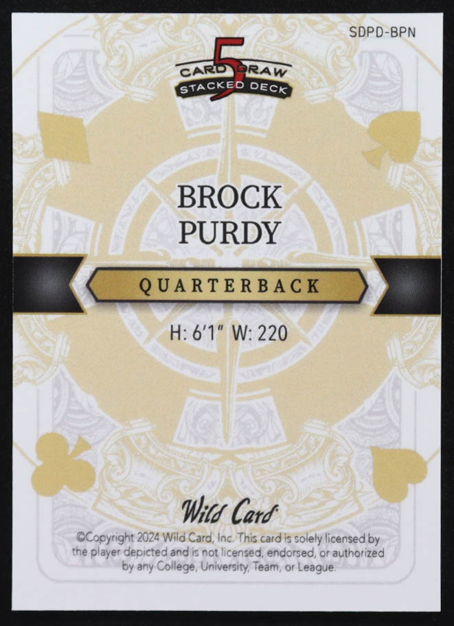 Brock Purdy 2024 Wild Card 5 Card Draw Stacked Deck Jack Diamonds Purple Mojo #SDPSBPN #3/4