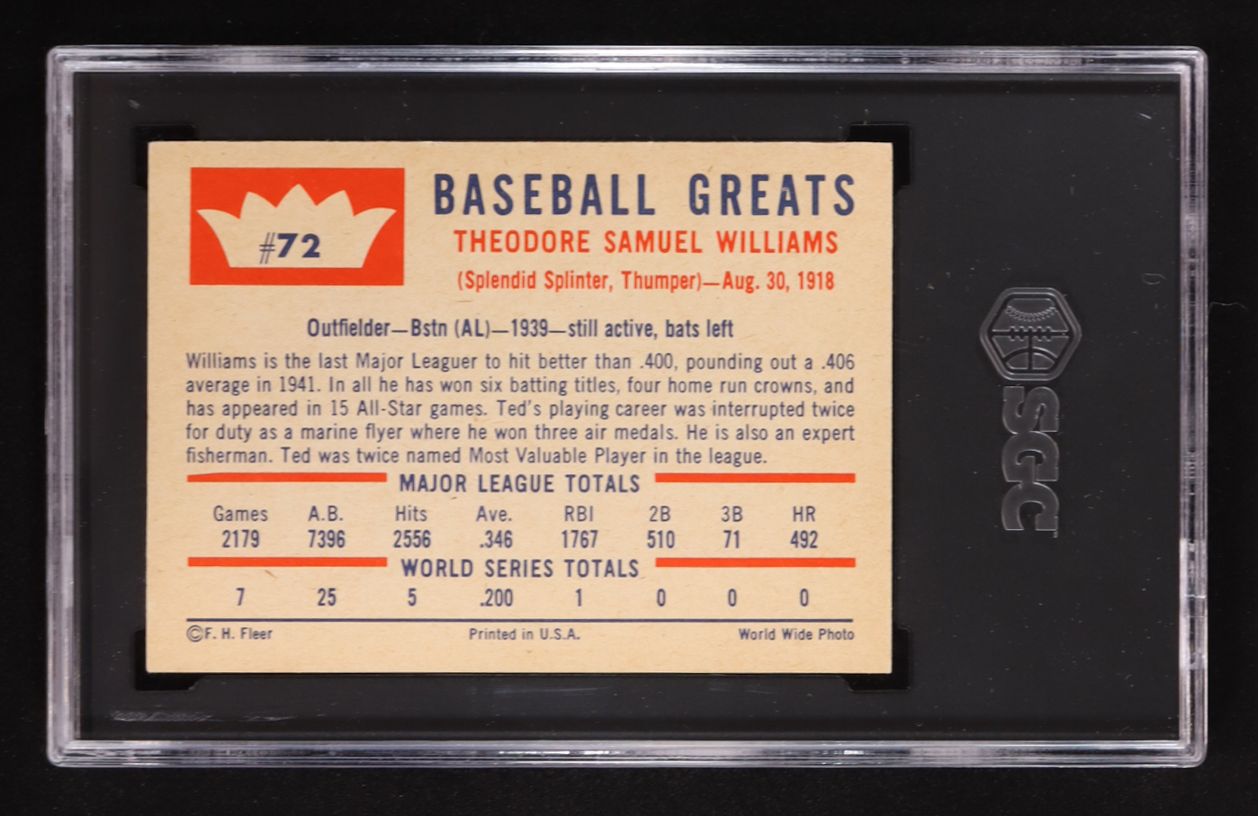 Ted Williams 1960 Fleer #72 (SGC 6)