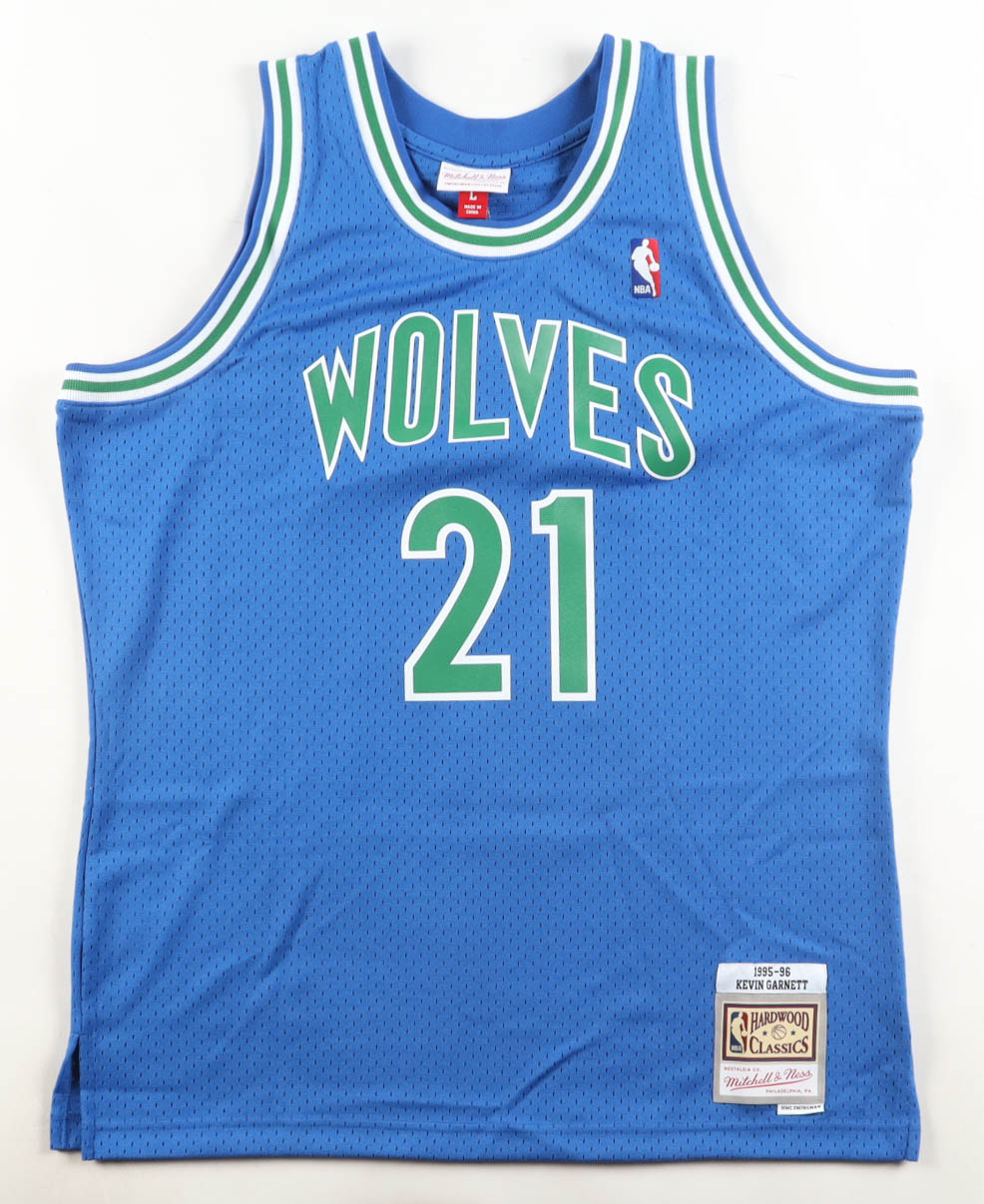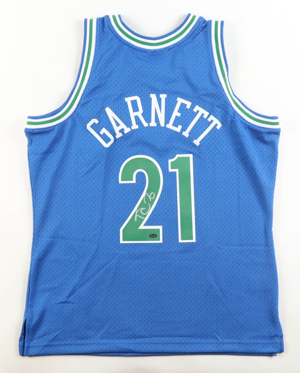 Mitchell & Ness authentic jersey with everything pressed on, size XL. Hand-signed by Kevin Garnett (HOF).