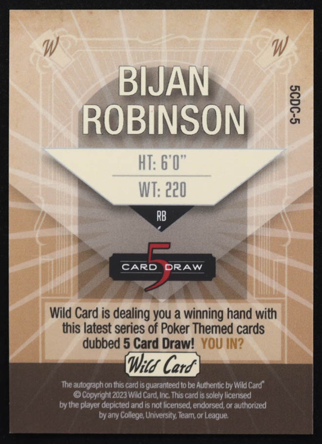 Bijan Robinson 2023 Wild Card 5 Card Draw Purple Crystal Signatures #5CDC5 #1/4 RC