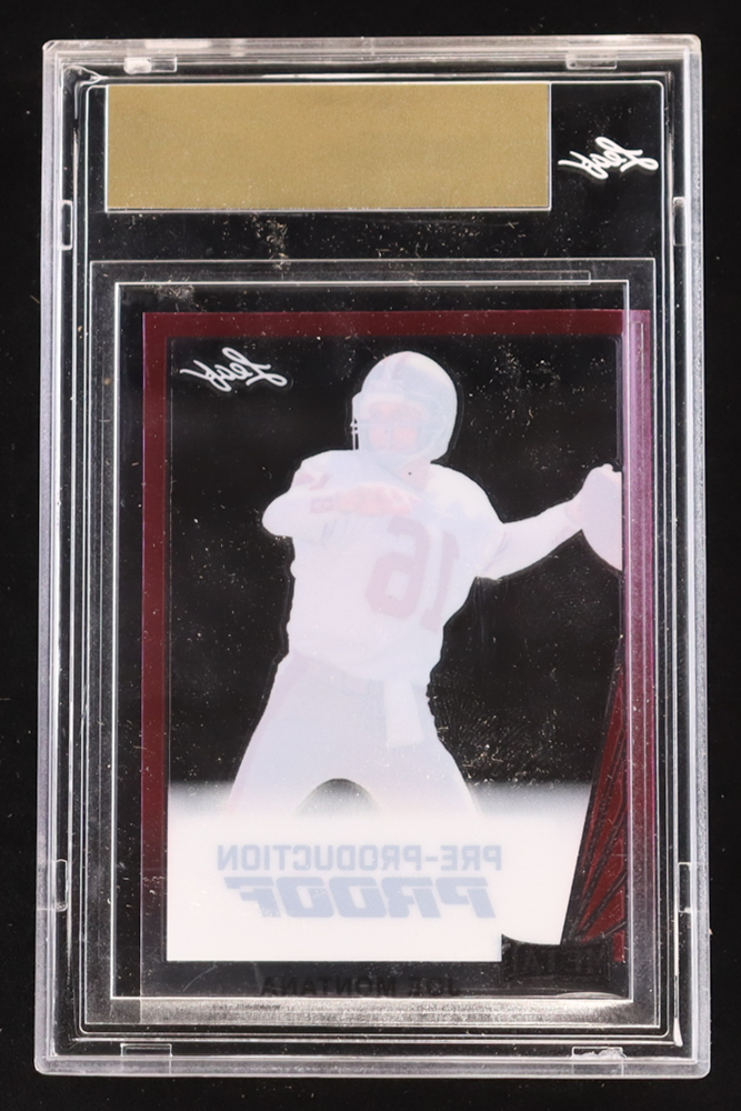 Joe Montana 2024 Leaf Joe Montana Legacy '90 Leaf Pre-Production Proof Clear Pink #NNO #1/1 (Leaf Encapsulated)