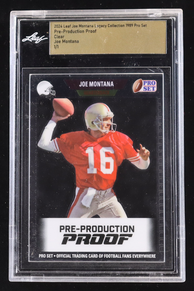 Joe Montana 2024 Leaf Joe Montana Legacy '89 Pro Set Pre-Production Proof Clear #NNO #1/1 (Leaf Encapsulated)