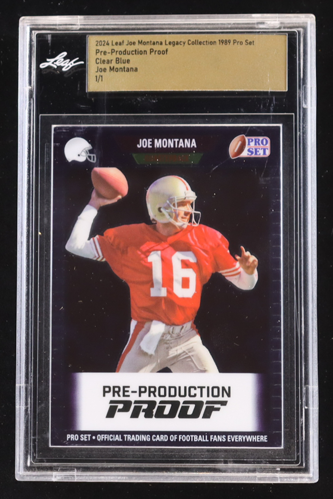 Joe Montana 2024 Leaf Joe Montana Legacy '89 Pro Set Pre-Production Proof Clear Blue #NNO #1/1 (Leaf Encapsulated)
