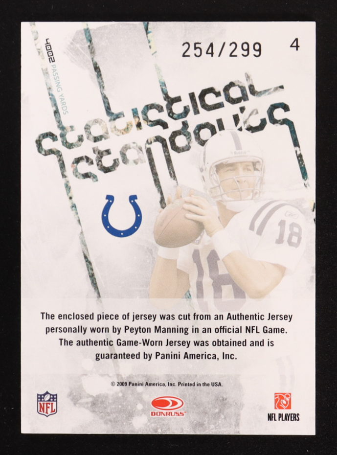 Peyton Manning 2009 Donruss Rookies and Stars Statistical Standouts Materials #4 #254/299