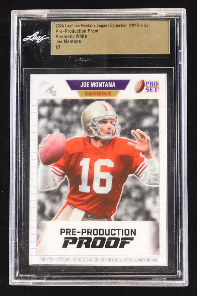 Joe Montana 2024 Leaf Joe Montana Legacy '89 Pro Set Pre-Production Proof Prismatic White #NNO #1/1 (Leaf Encapsulated)