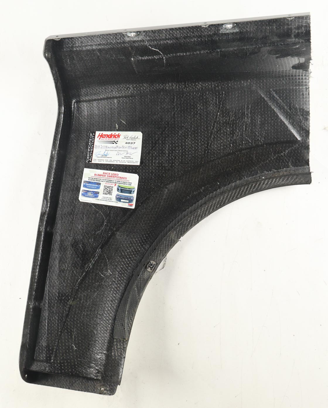 Race-Used Right Rear Quarter Panel Car Piece from Alex Bowman's #48 Test Car during the 2022 Straight Talk Wireless 400. Authenticated by the Director and Race Used Parts Specialist at Hendrick Motorsports.