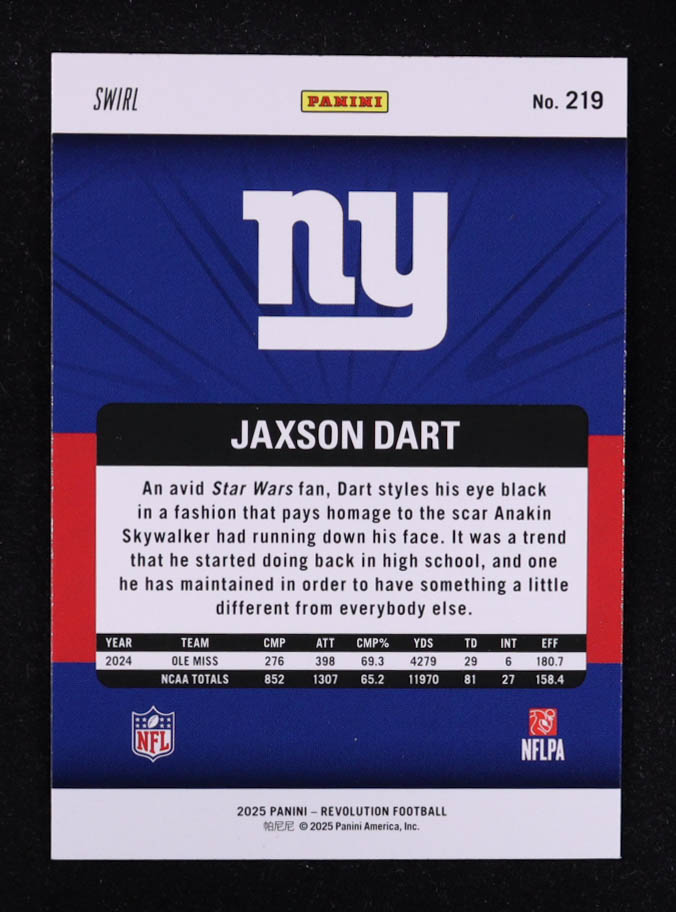 Jaxson Dart 2025 Panini Revolution Red Swirl #219 RC