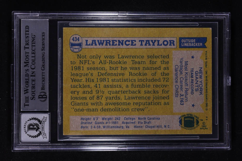 Lawrence Taylor Signed 1982 Topps #434 RC (BGS | Autograph Graded BGS 10)