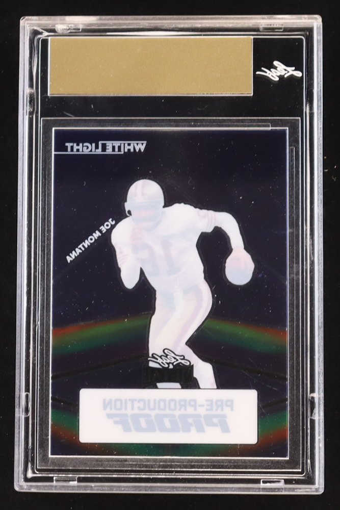 Joe Montana 2024 Leaf Joe Montana Legacy White Light Pre-Production Proof Clear Blue #NNO #1/1 (Leaf Encapsulated)