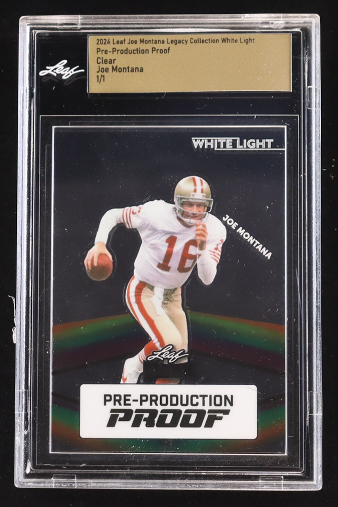 Joe Montana 2024 Leaf Joe Montana Legacy White Light Pre-Production Proof Clear #NNO #1/1 (Leaf Encapsulated)