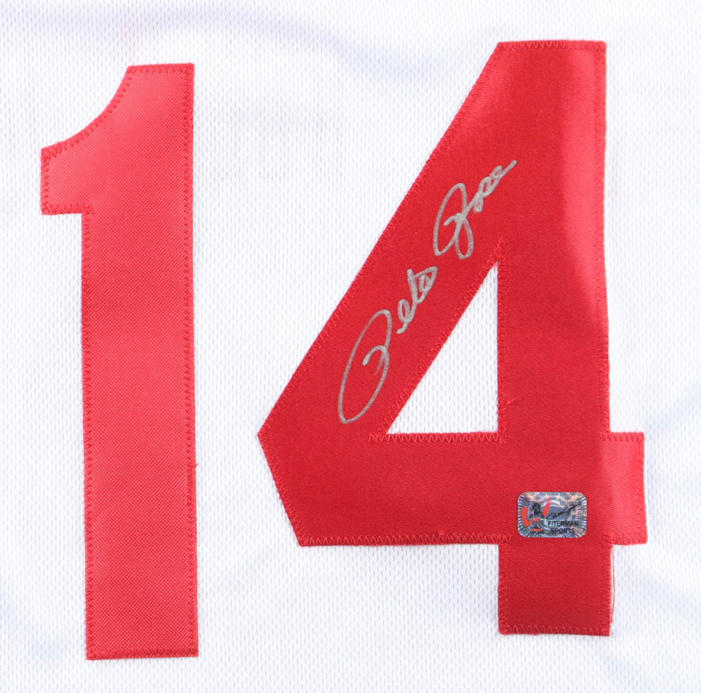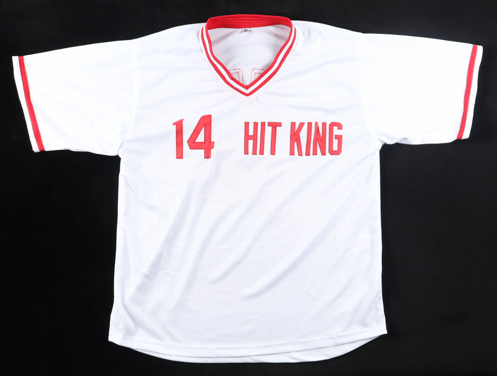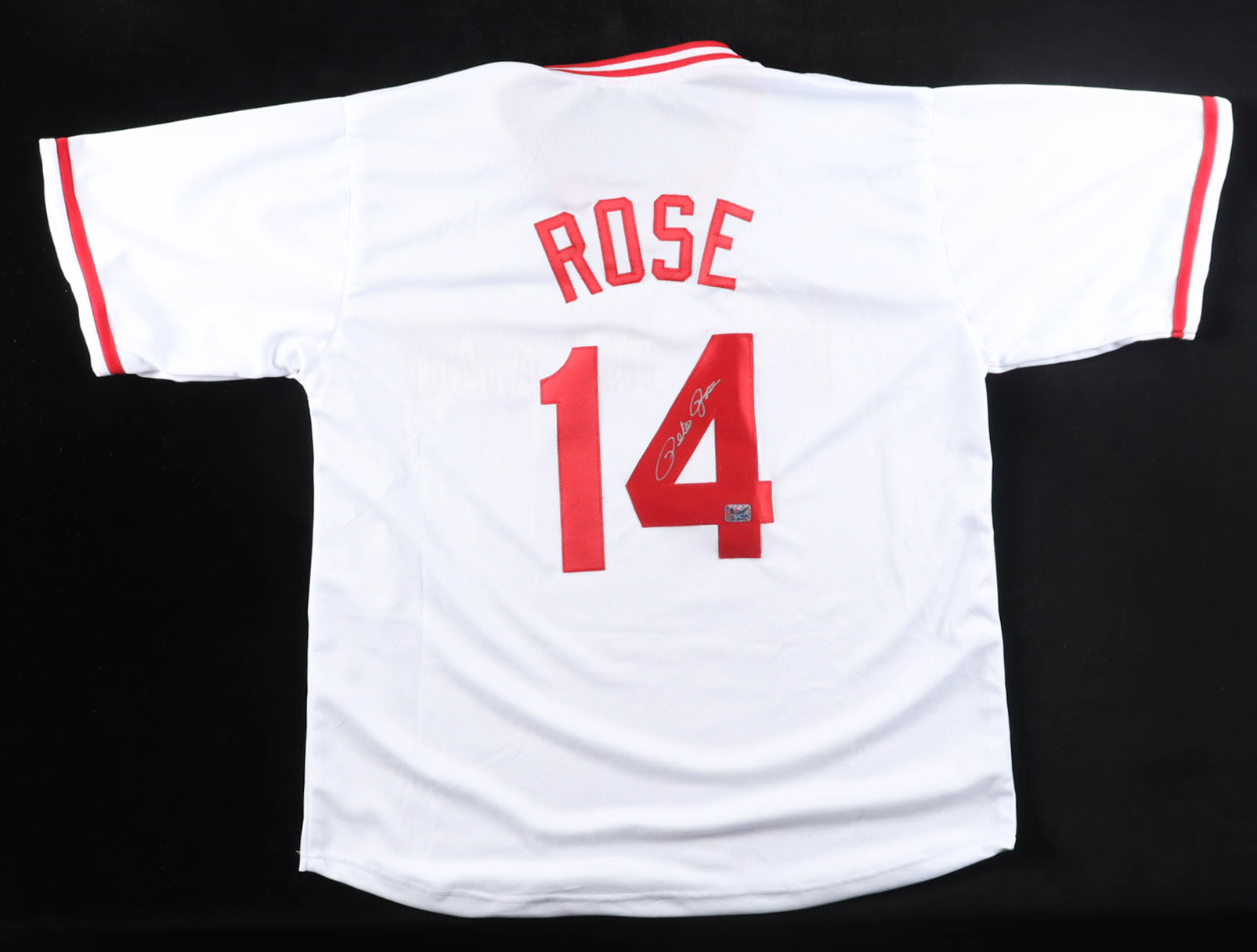 Custom jersey with everything sewn on, size XL. Hand-signed by Pete Rose (D. 2024, Cincinnati Reds).