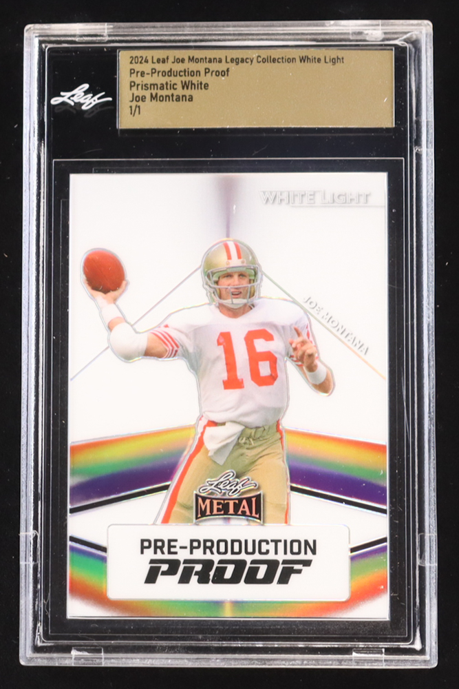 Joe Montana 2024 Leaf Joe Montana Legacy White Light Pre-Production Proof Prismatic White #NNO #1/1 (Leaf Encapsulated)