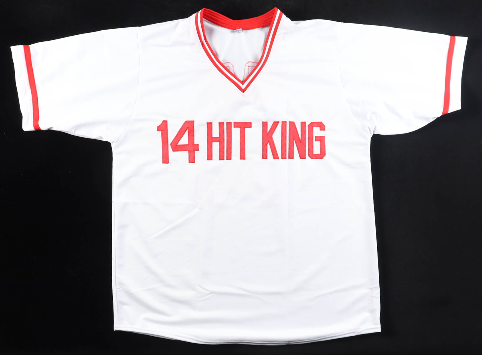 Custom jersey with everything sewn on, size XL. Hand-signed by Pete Rose (D. 2024, Cincinnati Reds).