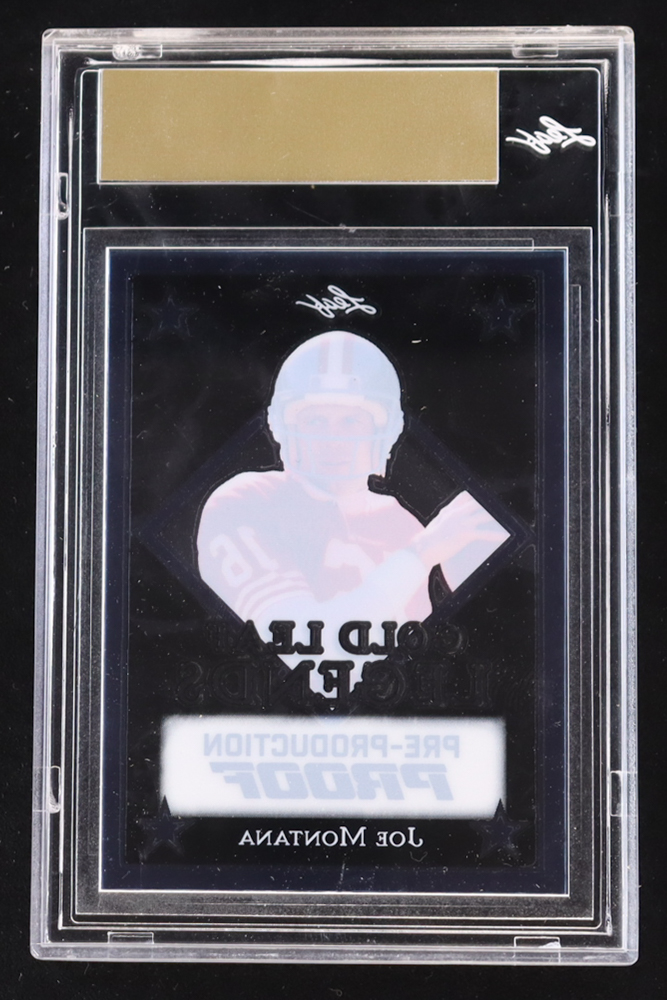 Joe Montana 2024 Leaf Joe Montana Legacy Gold Leaf Legends Pre-Production Proof Clear Platinum #NNO #1/1 (Leaf Encapsulated)