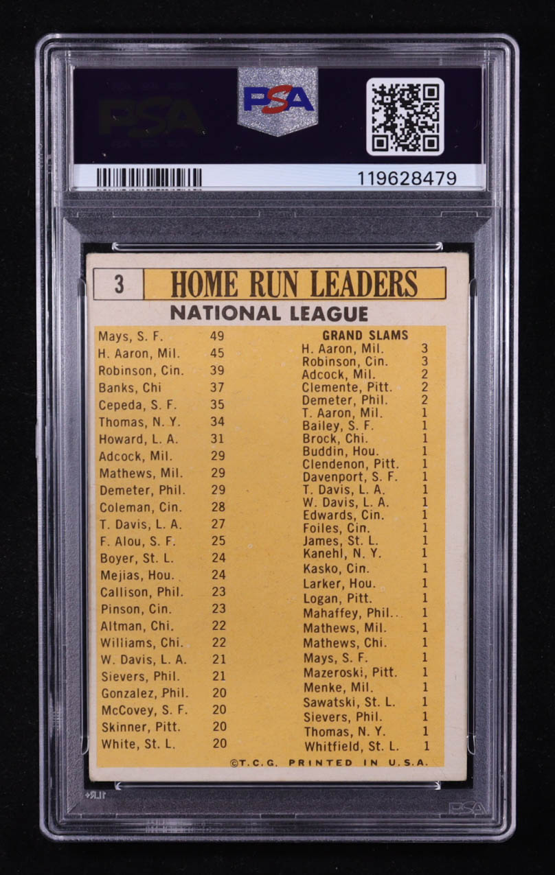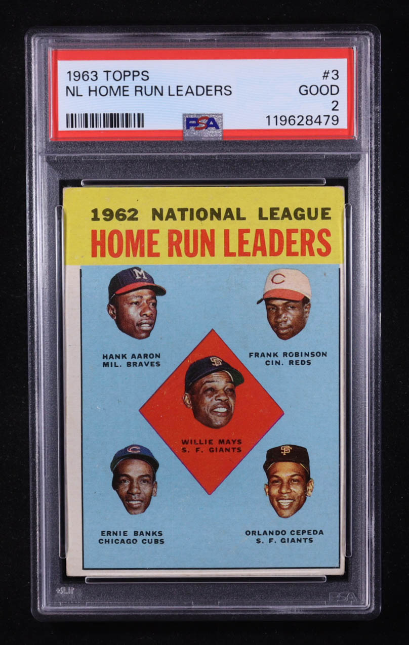 Willie Mays / Hank Aaron / Frank Robinson / Orlando Cepeda / Ernie Banks 1963 Topps #3 / NL Home Run Leaders (PSA 2)