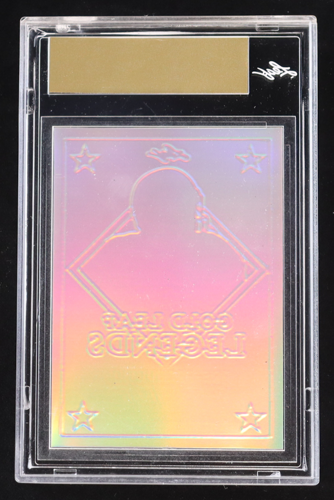 Joe Montana 2024 Leaf Joe Montana Legacy Gold Leaf Legends Pre-Production Proof Prismatic Pink #NNO #1/1 (Leaf Encapsulated)