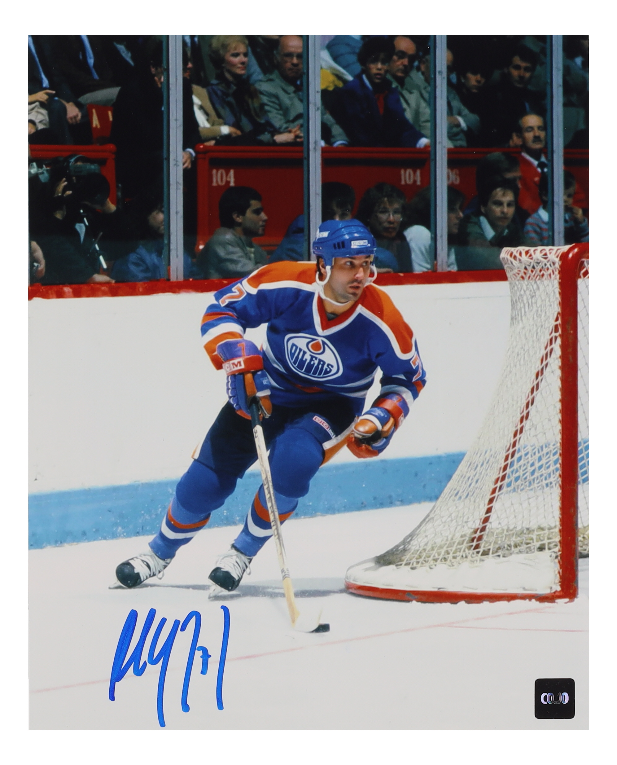 Photo measures 8" x 10" in size and has been hand-signed by Paul Coffey (Edmonton Oilers, HOF).