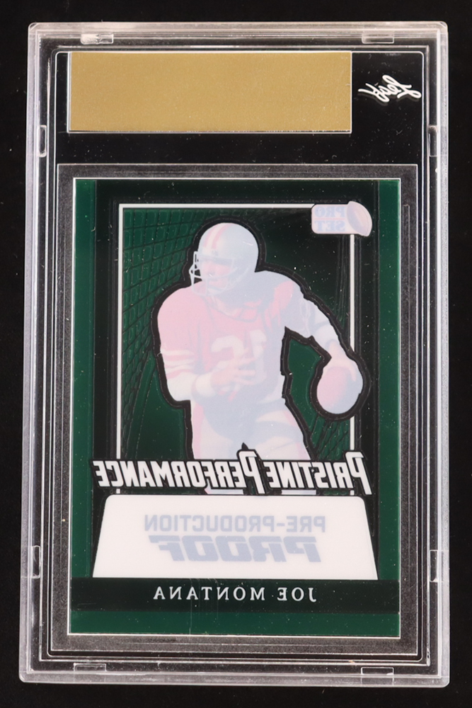 Joe Montana 2024 Leaf Joe Montana Legacy Pristine Performance Pre-Production Proof Clear Green #NNO #1/1 (Leaf Encapsulated)