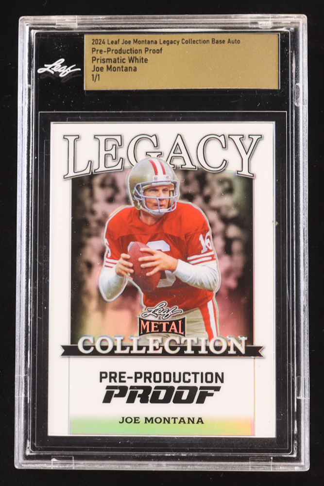 Joe Montana 2024 Leaf Joe Montana Legacy Base Auto Pre-Production Proof Prismatic White #NNO #1/1 (Leaf Encapsulated)