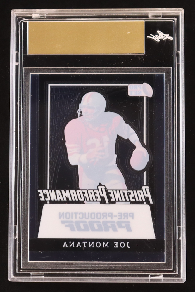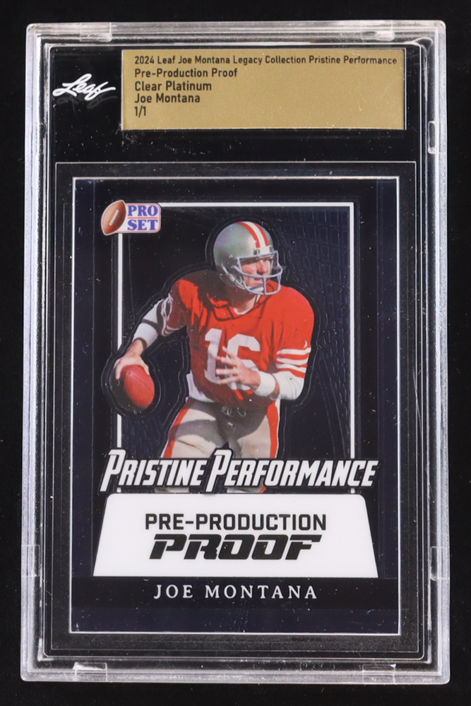 Joe Montana 2024 Leaf Joe Montana Legacy Pristine Performance Pre-Production Proof Clear Platinum #NNO #1/1 (Leaf Encapsulated)