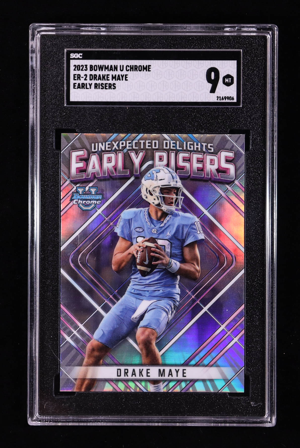 Drake Maye 2023 Bowman Chrome University Unexpected Delights Early Risers #ER2 RC (SGC 9)