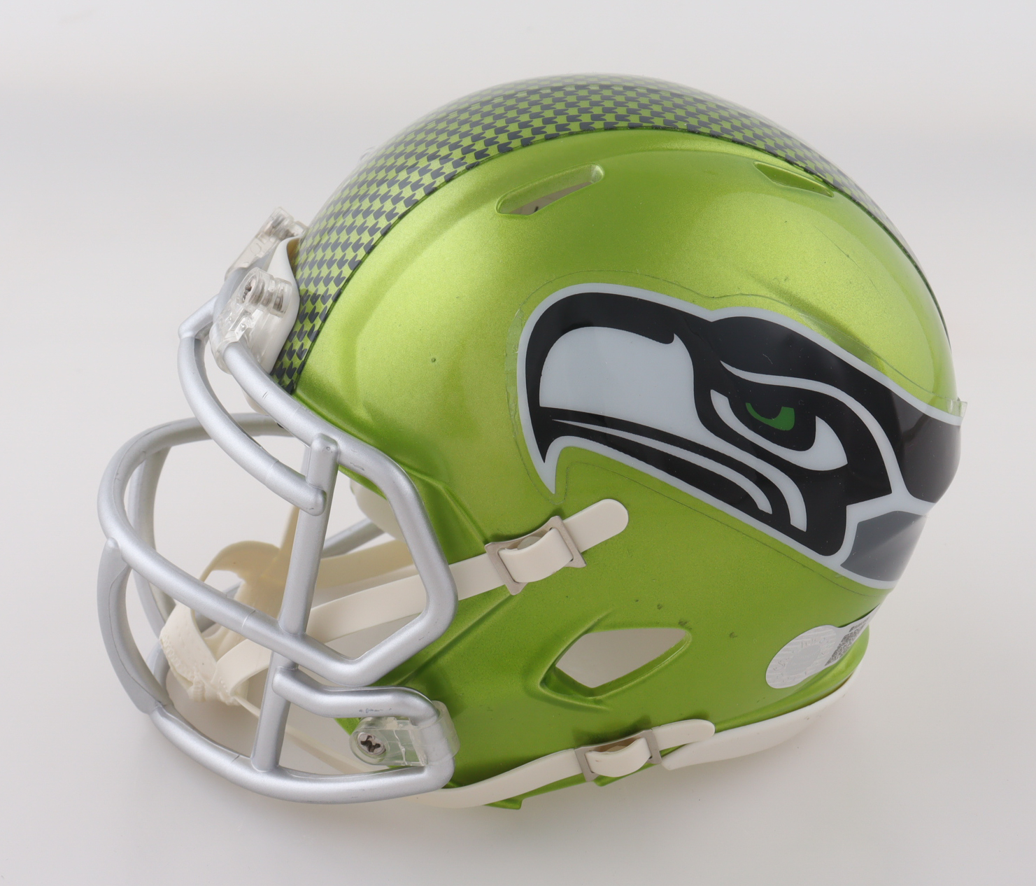 Riddell Seattle Seahawks Flash Alternate Speed Mini Helmet. Hand-signed and inscribed by Walter Jones (HOF).