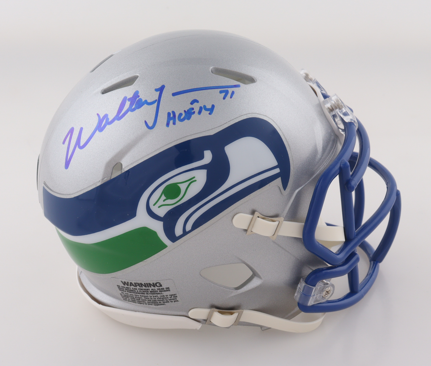 Riddell Seattle Seahawks Throwback Alternate Speed Mini Helmet. Hand-signed and inscribed by Walter Jones (HOF).