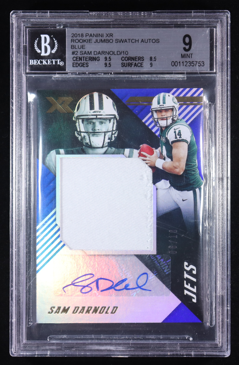 Sam Darnold 2018 Panini XR Rookie Jumbo Swatch Autographs Blue #2 #06/10 RC (Beckett 9 | Auto Grade BGS 10)
