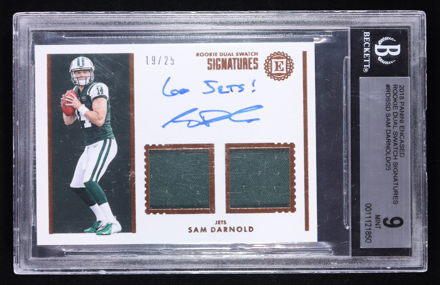 Sam Darnold 2018 Panini Encased Rookie Dual Swatch Signatures #RDSSD #19/25 RC (Beckett 9 | Auto Grade BGS 10)