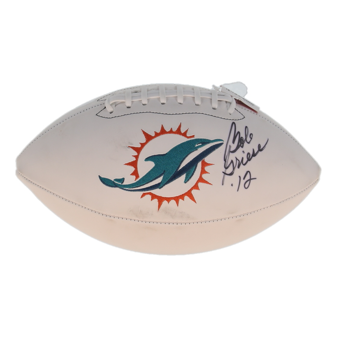 Wilson Miami Dolphins Logo football. Hand-signed by Bob Griese (HOF). Please note, there is some staining below the signature, and the signature ink has bled.