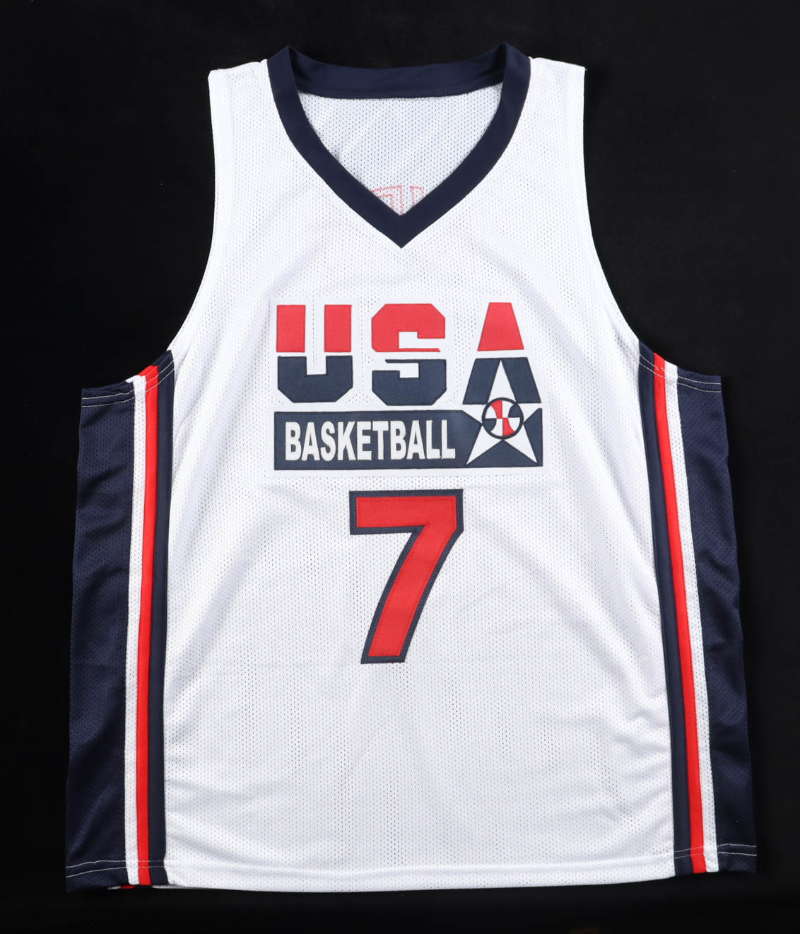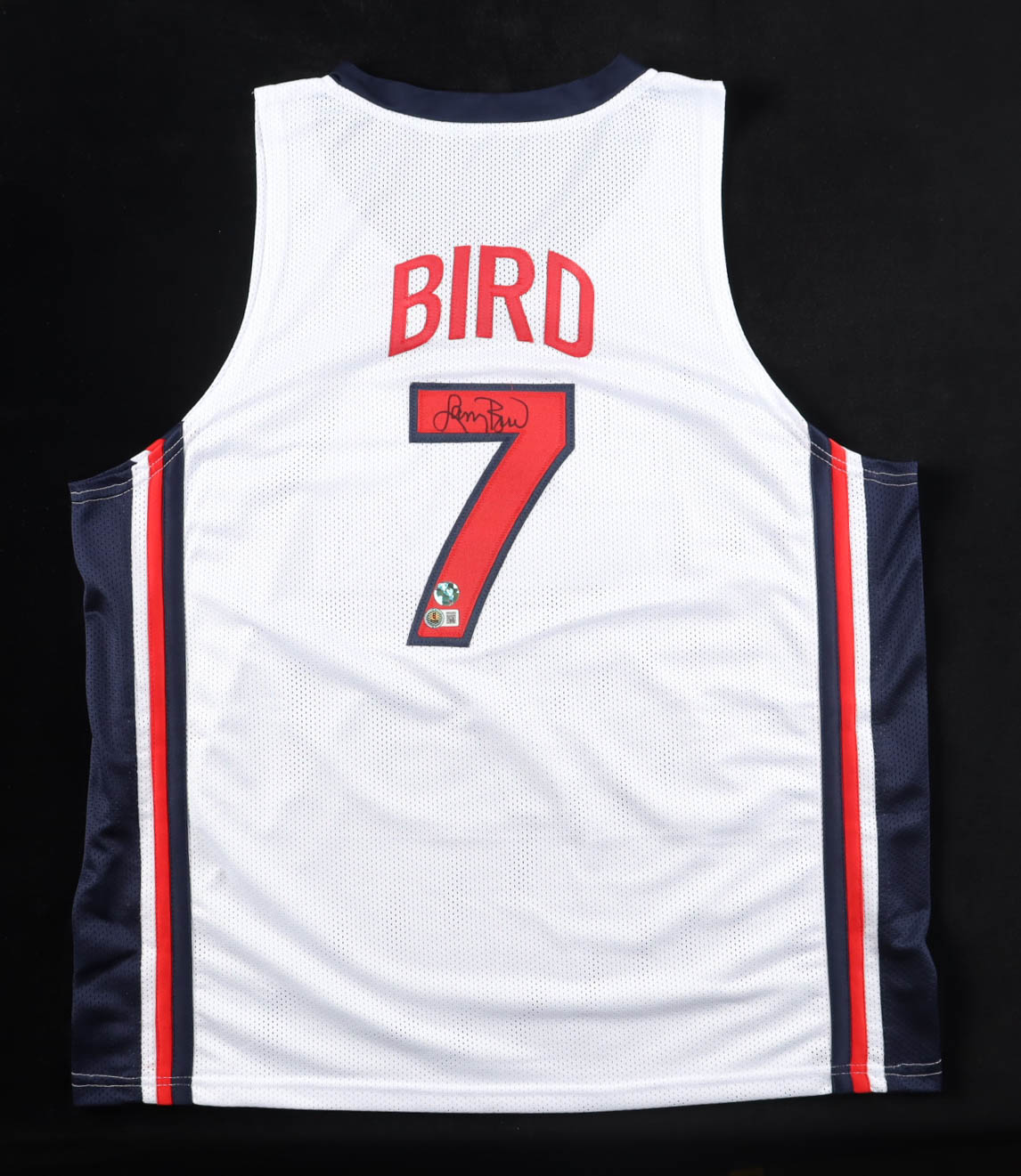 Custom jersey with everything sewn on, size XL. Hand-signed by Larry Bird (Team USA / Boston Celtics, HOF).