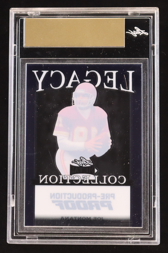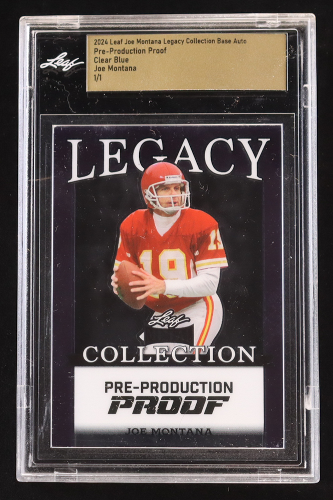 Joe Montana 2024 Leaf Joe Montana Legacy Base Auto Pre-Production Proof Clear Blue #NNO #1/1 (Leaf Encapsulated)