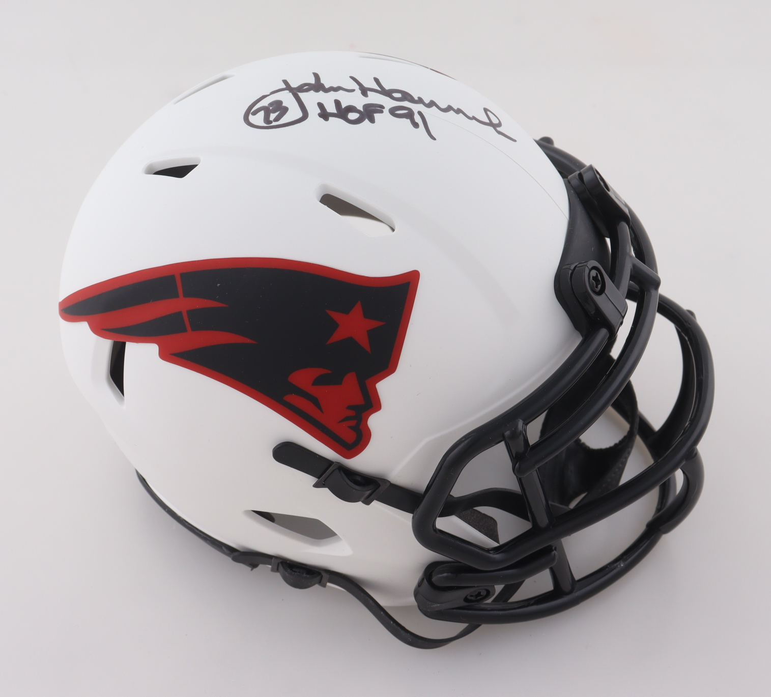 John Hannah Signed Patriots Lunar Eclipse Alternate Speed Mini Helmet Inscribed "HOF 91" (Schwartz)