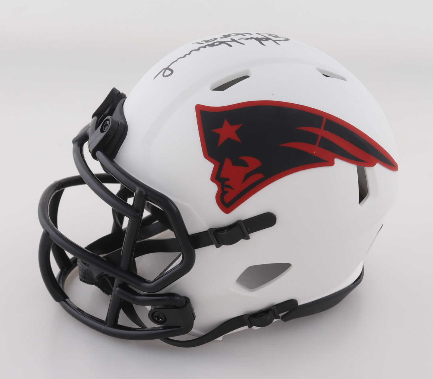 Riddell New England Patriots Lunar Eclipse Alternate Speed Mini Helmet. Hand-signed and inscribed by John Hannah (HOF).