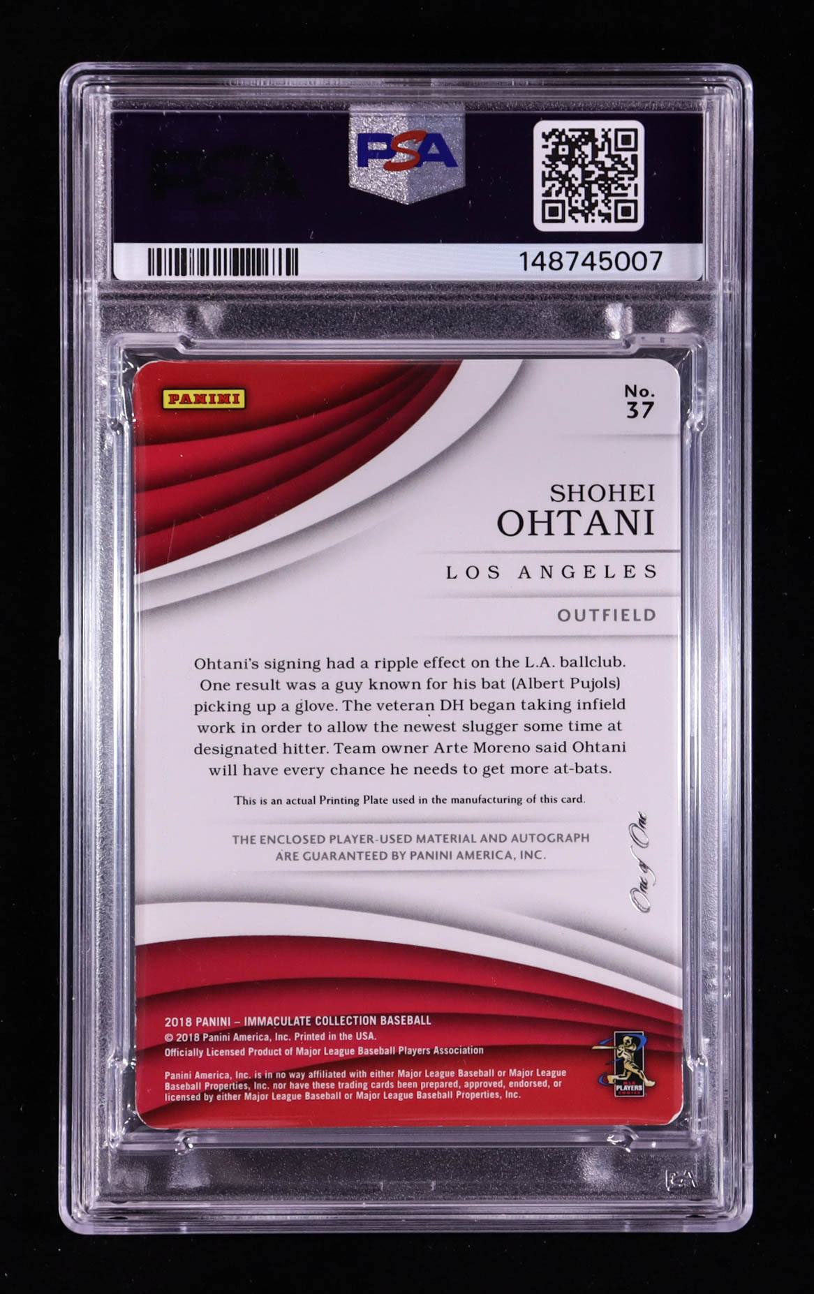 Shohei Ohtani 2018 Immaculate Collection Jersey Autographs Printing Plates Cyan #37 RC #1/1 (PSA Authentic)