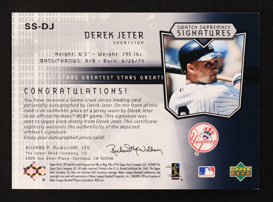 Derek Jeter 2004 SPx Swatch Supremacy Signatures Stars #DJ #228/275