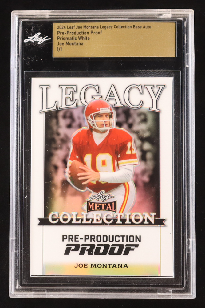 Joe Montana 2024 Leaf Joe Montana Legacy Base Auto Pre-Production Proof Prismatic White #NNO #1/1 (Leaf Encapsulated)