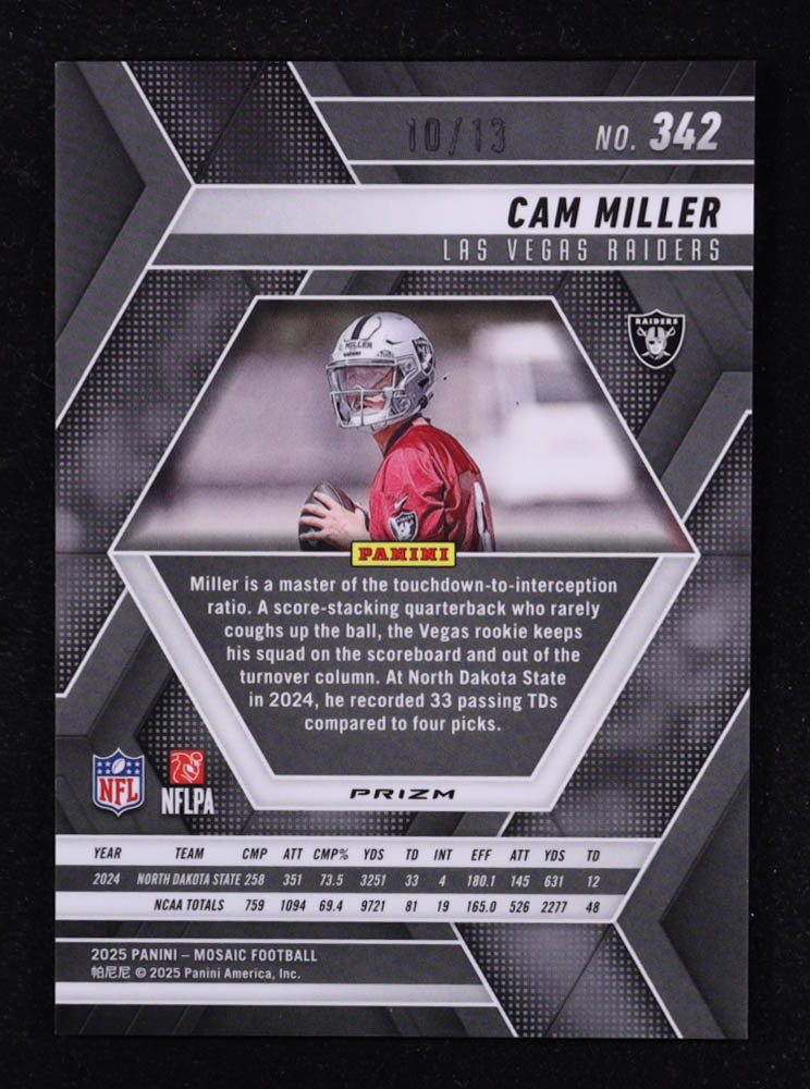 Cam Miller 2025 Panini Mosaic Mosaic Pink Spectris #342 #10/13 RC