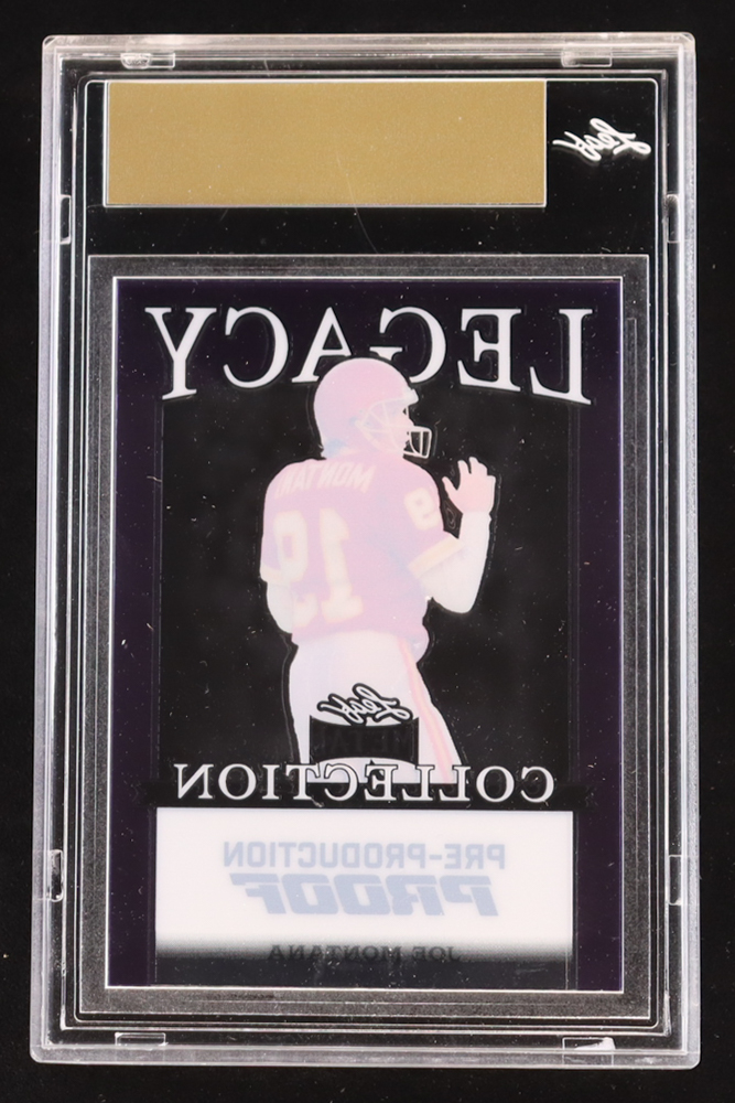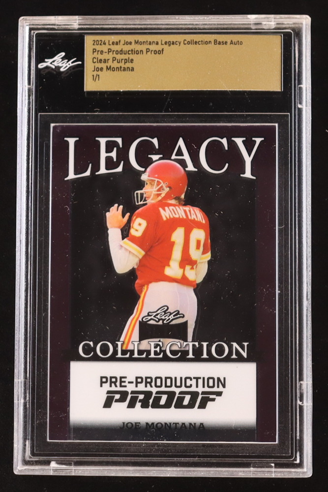 Joe Montana 2024 Leaf Joe Montana Legacy Base Auto Pre-Production Proof Clear Purple #NNO #1/1 (Leaf Encapsulated)