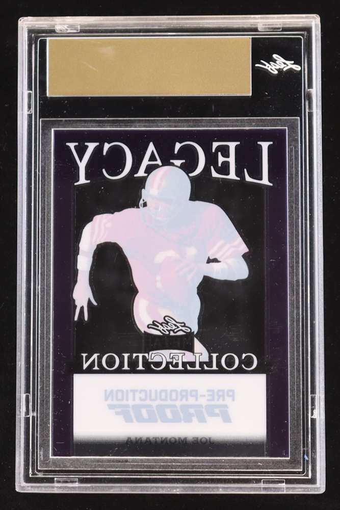 Joe Montana 2024 Leaf Joe Montana Legacy Base Auto Pre-Production Proof Clear Purple #NNO #1/1 (Leaf Encapsulated)