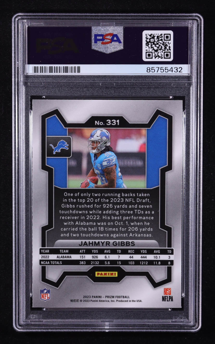 Jahmyr Gibbs Signed 2023 Panini Prizm #331 RC (PSA | Autograph Graded PSA 10)