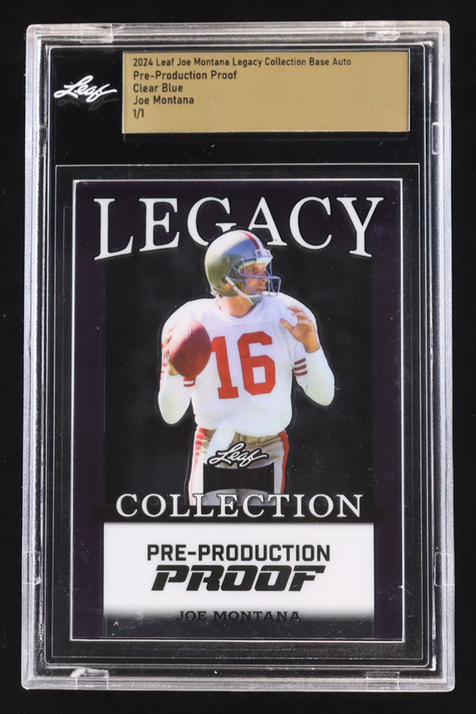 Joe Montana 2024 Leaf Joe Montana Legacy Base Auto Pre-Production Proof Clear Blue #NNO #1/1 (Leaf Encapsulated)