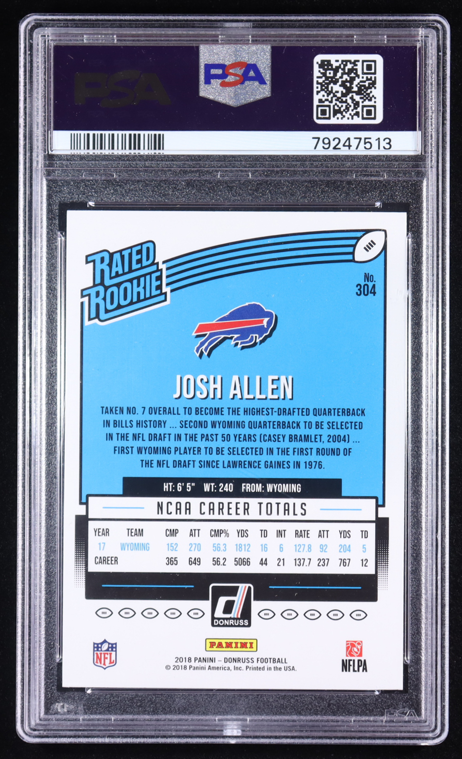 Josh Allen 2018 Donruss #304 RR RC (PSA 10)