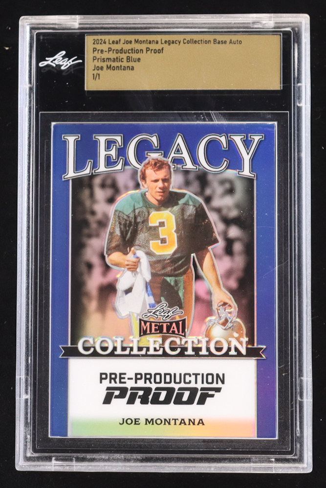 Joe Montana 2024 Leaf Joe Montana Legacy Base Auto Pre-Production Proof Prismatic Blue #NNO #1/1 (Leaf Encapsulated)