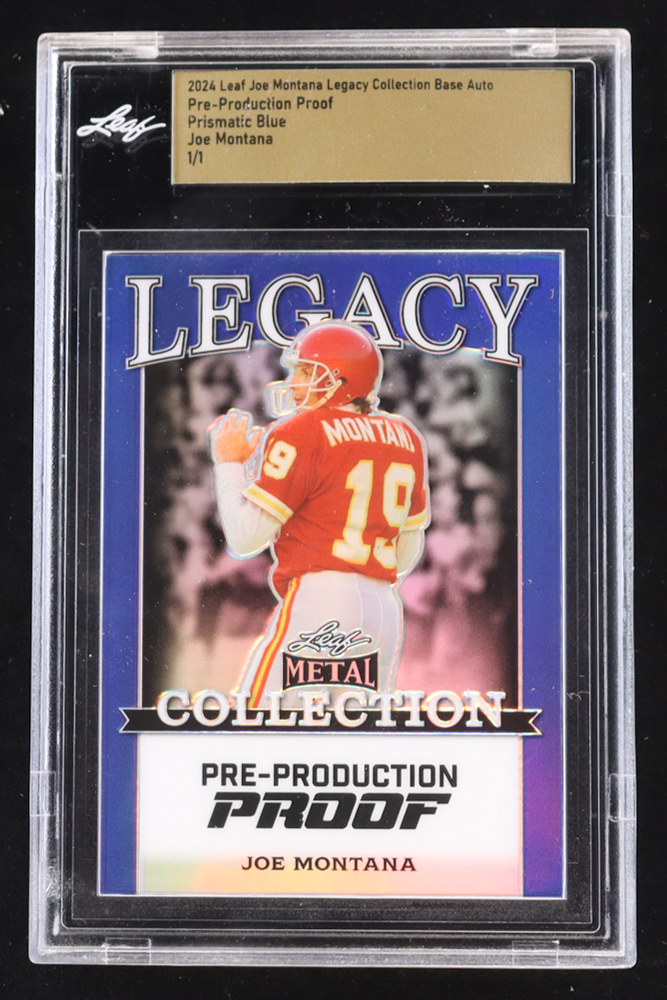 Joe Montana 2024 Leaf Joe Montana Legacy Base Auto Pre-Production Proof Prismatic Blue #NNO #1/1 (Leaf Encapsulated)