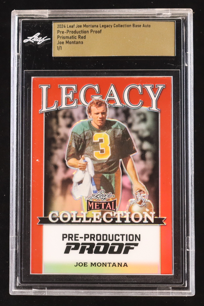 Joe Montana 2024 Leaf Joe Montana Legacy Base Auto Pre-Production Proof Prismatic Red #NNO #1/1 (Leaf Encapsulated)