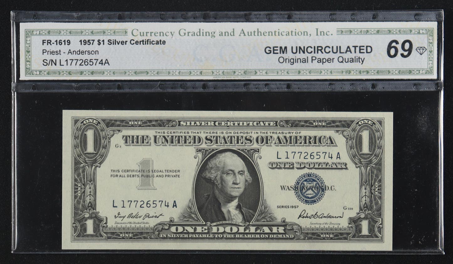 1957 United States of America $1 One Dollar Silver Certificate Note (CGA 69)