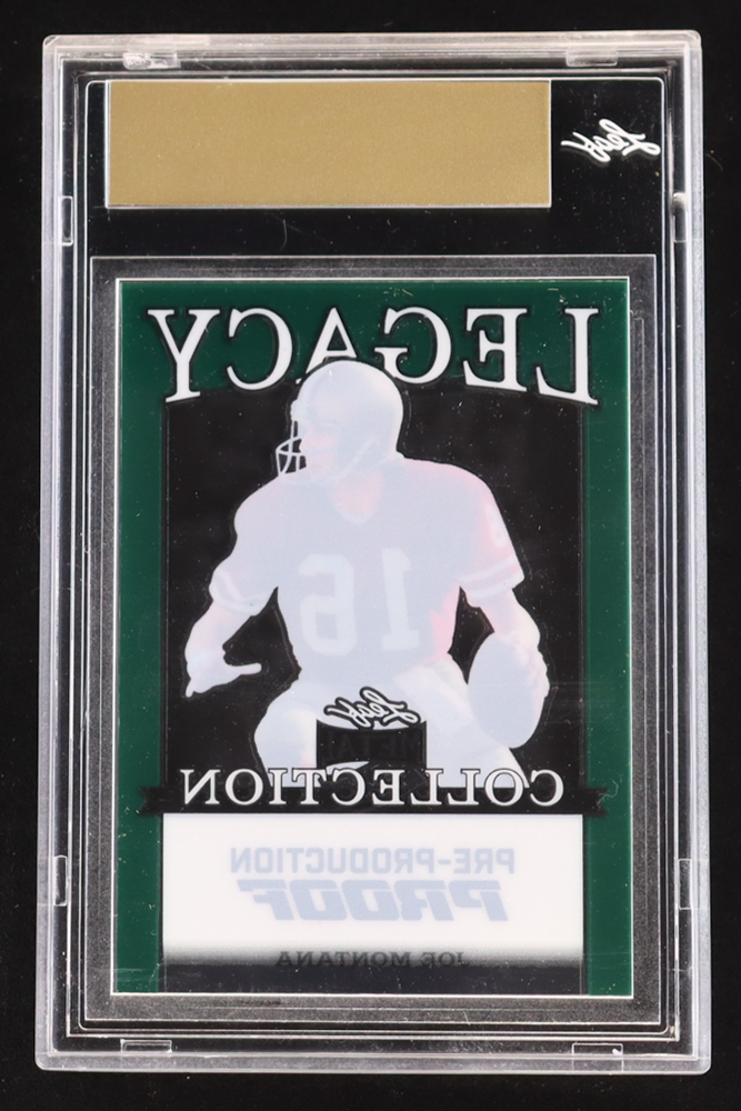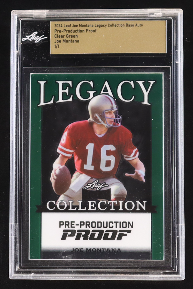 Joe Montana 2024 Leaf Joe Montana Legacy Base Auto Pre-Production Proof Clear Green #NNO #1/1 (Leaf Encapsulated)