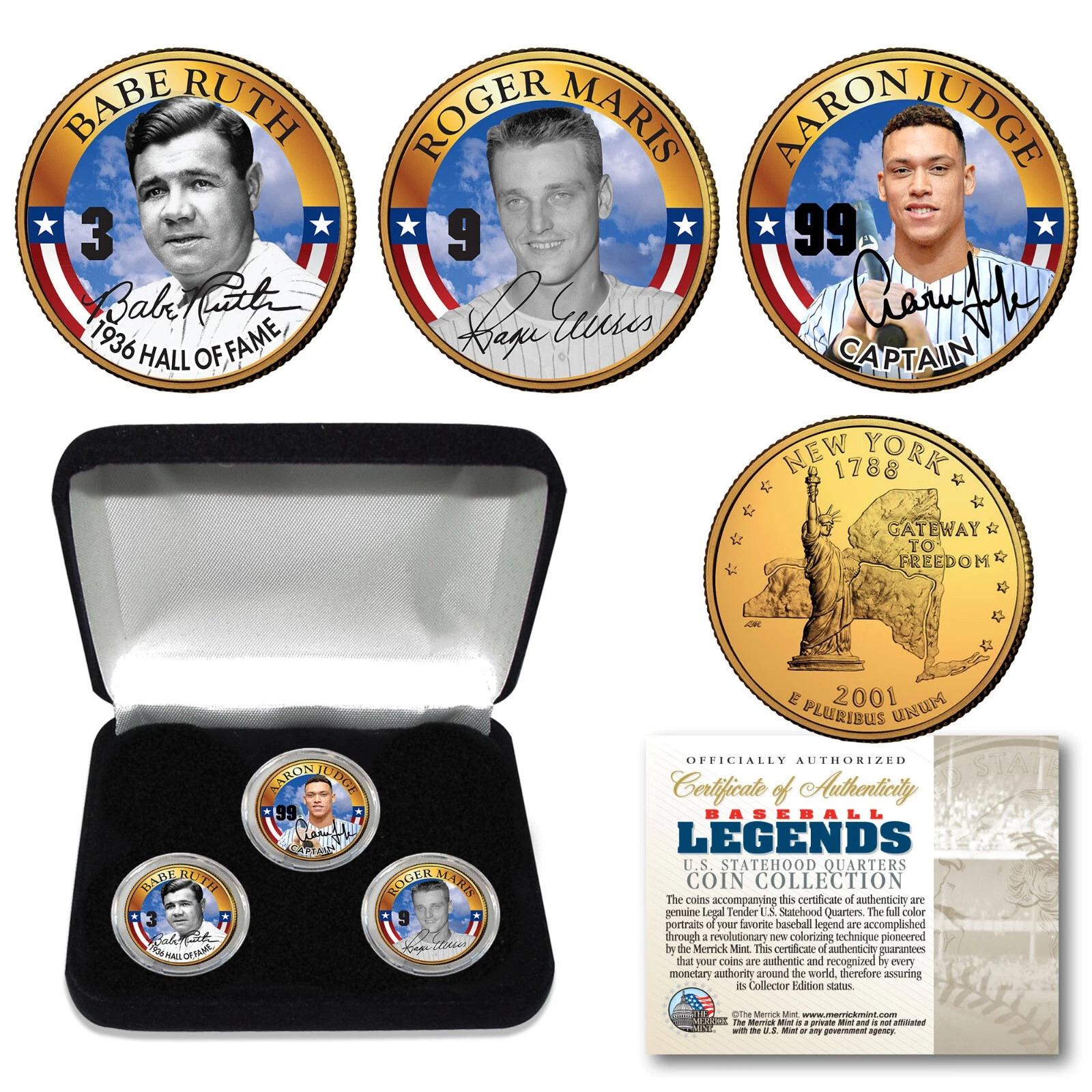 Babe Ruth / Roger Maris / Aaron Judge 24KT Gold Clad New York State Quarters Set Of (3) Coins with Display Box