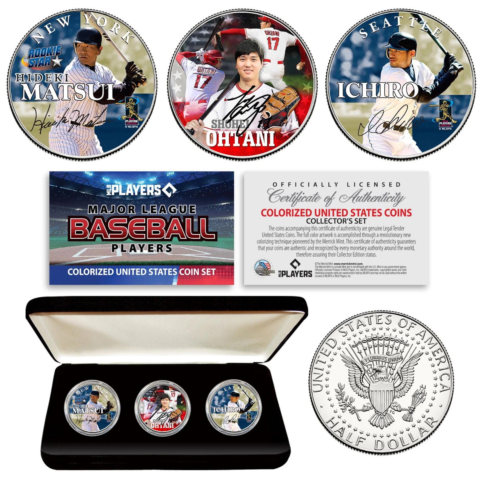 Shohei Ohtani / Ichiro / Hideki Matsui 24KT Colorized JFK Half Dollars Set Of (3) Coins with Display Box